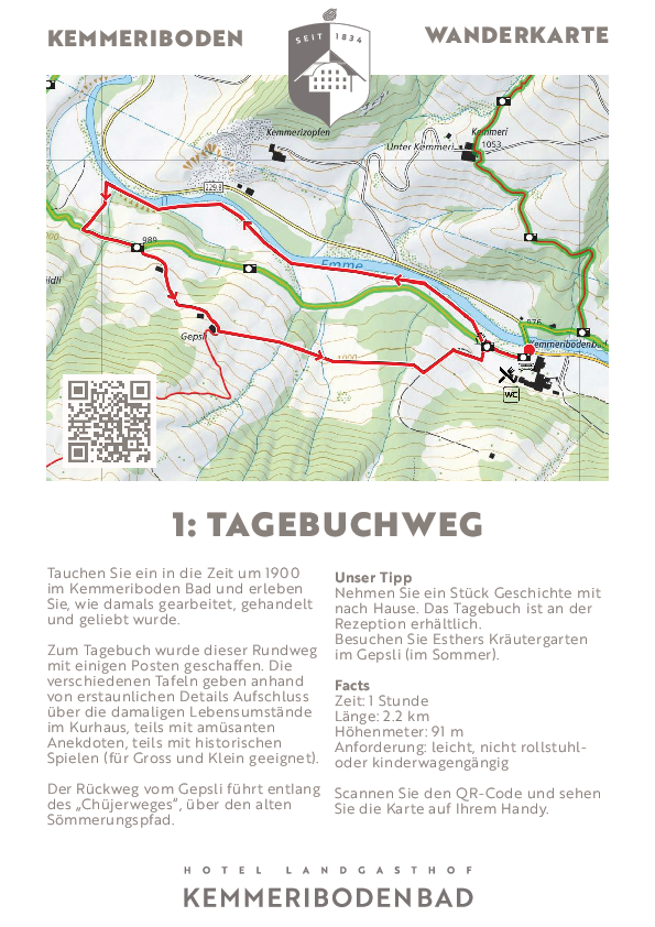 Die Langnauer Autorin Gaby Kaufmann hat sich im Auftrag des Hotel Kemmeriboden Bad mit „Das geheime Tagebuch“ auf die Spuren der Kemmeriboden-Geschichte begeben und bei den Recherche-Arbeiten manch spannende Erkenntnis gewonnen. Wie etwa die Tatsache, dass die Gastgeber-Familie Invernizzi zu Dällebach Kari’s Verwandten zählt. Das Geschriebene im Tagebuch vermittelt einen realistischen Einblick in die ereignisreiche Zeit vor dem 2. Weltkrieg.