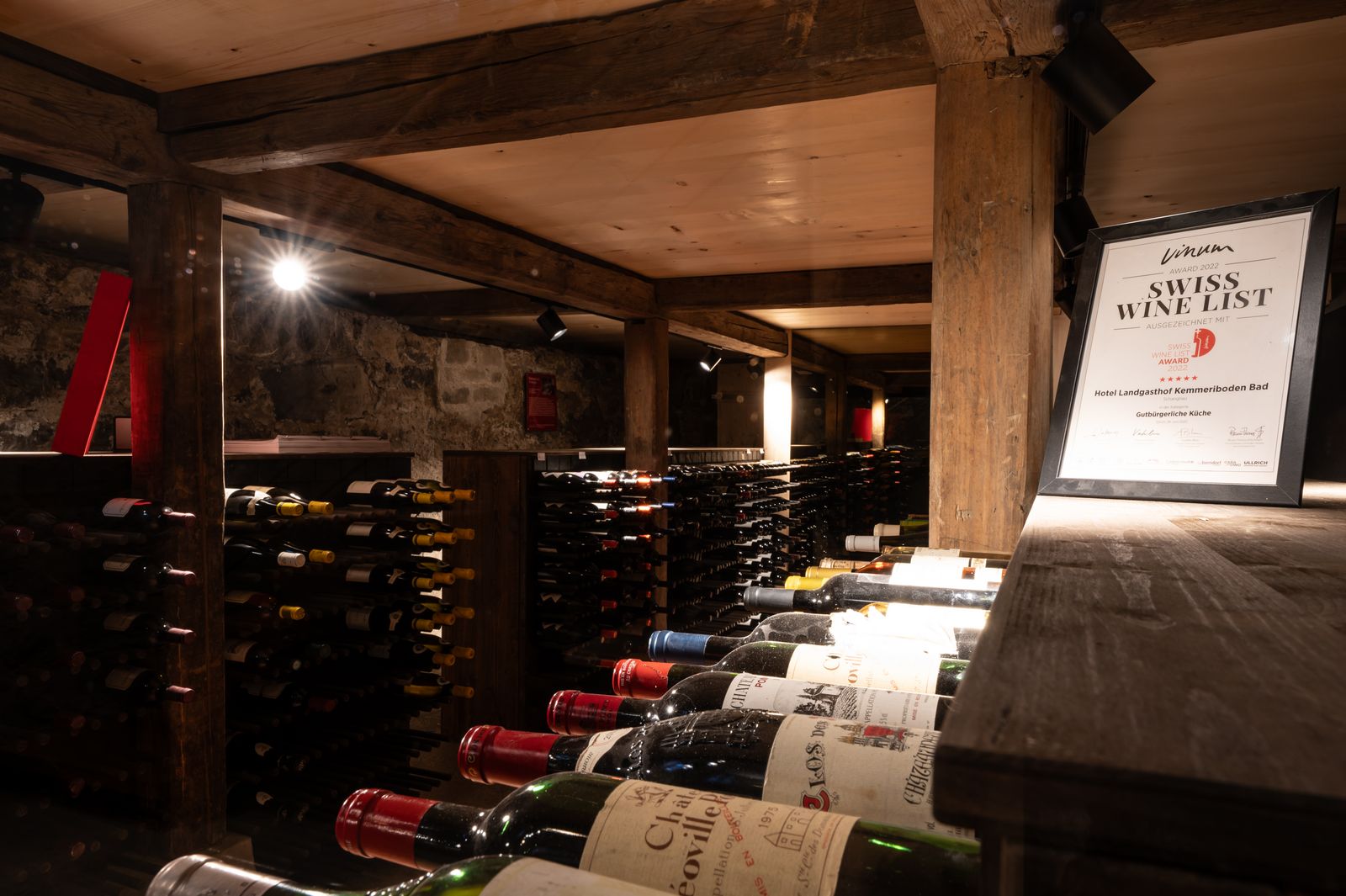 Im Untergeschoss befindet sich unsere Weingalerie, wo wir genussvolle Tropfen lagern.