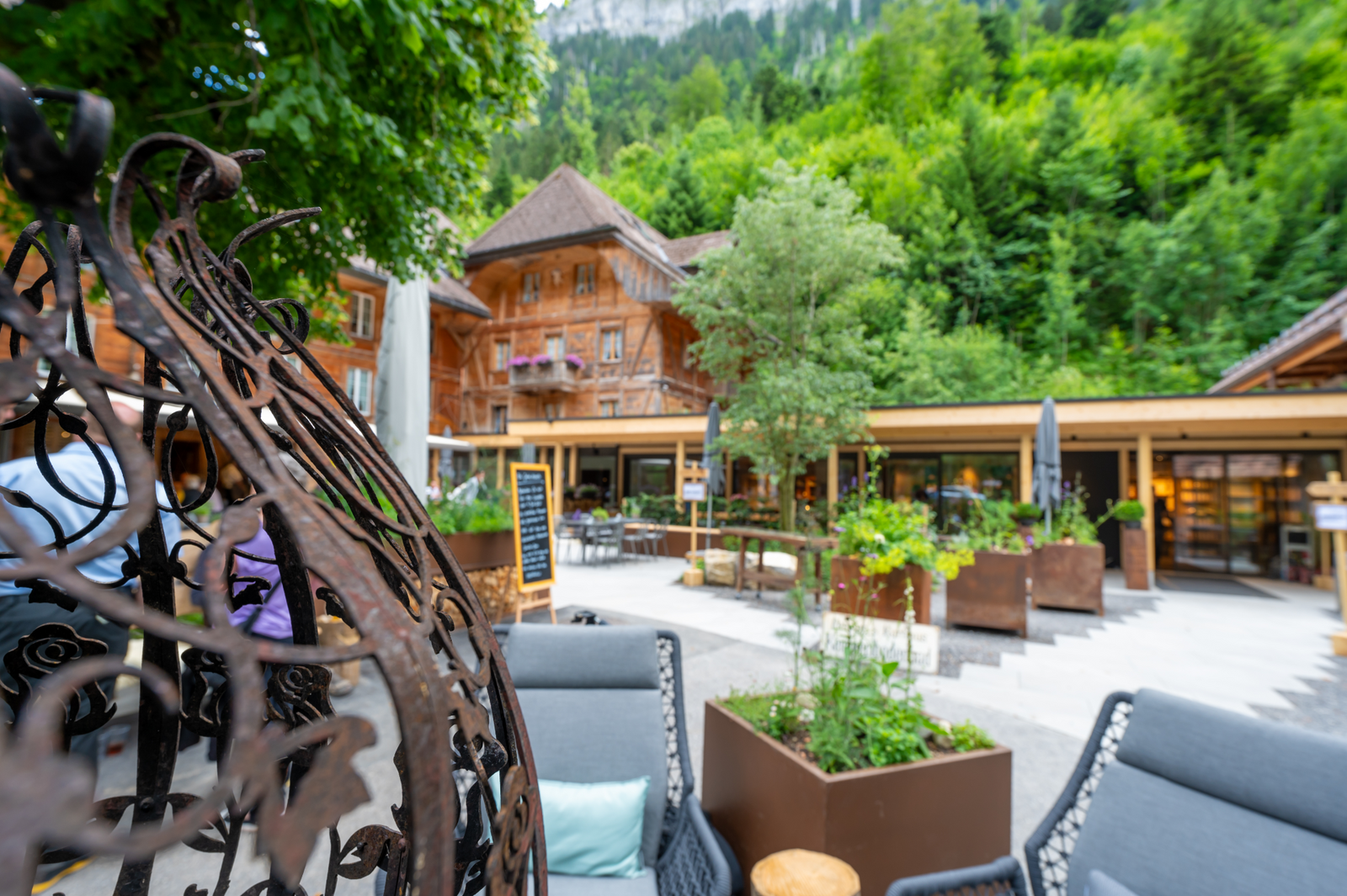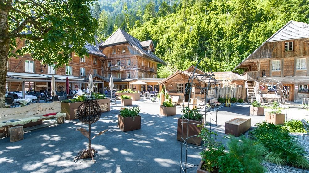 Unsere Sommerterrasse ist idyllisch inmitten des Kemmeriboden gelegen.